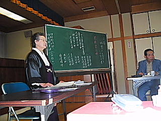 5月は年の内で一番行事の少ない月ですが、大祭でたまっていた仕事や決算など事 務処理が多い季節でもあります。 気が付けば時間が経ってしまい、申し訳なく思います。 >行事予定< 毎月1日6:00より月例祭、16日16:00より教祖祭 1)6月5・6日(土・日)は、名古屋でブロック研修会です。 2)6月19・20日(土・日)は、福山教会の出張講習会です。 <北九州教友会 次回は9月5日(日)> 5月15日(土)、明星会館において開かれました。 外からの参加は少なく、職員の研修会の幼になりましたが、参加者からは、 「アットホームで話しやすい雰囲気で安心」の声がありました。 御教誡の取り次ぎを、瀬戸局長・渡辺課長・徳永嘱託が1から3までそれぞれ行い ました。 筆者が、教祖の御著書を活字化した『皇典疑惑問答』の古事記の巻を、現代の生活 や考え方に参考になればと、お取り次ぎをさせて頂きました。 <教祖祭と身明し祈願> 5月16日(日)16:00より瀬戸宣教局長を祭主に教祖祭が行われました。 引き続き、筆者を祭主に身明し祈願が行われました。 <5月15日(土)名古屋大教会見学報告 神理誌編集の西部九広の平島洋子さんよ り> 一番印象強かったのは、やはり教会長のご人徳と、横江春太郎未来委員長の8月の 未来委員会に向けての次代の委員への勉強会です。 教会長様からは、私自身の神理教さまへの取り組みについてもアドバイスいただき ました。 勉強会では、未来委員会の発足趣旨・講演・基本理念について話されましたがその 中で、 「いま話題の皇室問題について、いつ、誰にきかれても神理教の人間として いい意見がいえるように」といわれたことです。 教師の資質向上を図っているのをこの勉強会でも感じました。 委員長の持論(CS経営 顧客満足)についても翌日の教会玄関の靴の並びがきれい になったと、勉強会の実践が翌日に話され、とても感心しました。 顧客満足という話は、とても幅広いのだけれども、どう具体的に実践するか、きち んと元にある理念があって、ポイントを整理すれば行動にうつしやすいと思いまし た。 (本院の玄関の靴はきれいに並べられていますか?私も気をつけねば。) 未来委員会講演でもきき、神理誌にも掲載しましたが、こういうことは小会を設け るとよけいに心に響くな、と思いました。 直会では、こられている方が、「教会長と話したい」と、うずうずと「教会長大好 きオーラ」がみなさんから出ていて、隣に席を頂いていた私は非常に非常に恐縮でご ざいました。 夜、教会長様いわく「心にあかりを灯すんです」ちょうちんが、とても綺麗で思わ ず撮りました。 *編集より 平島さんは名古屋大教会を始め、青森県の弘前教会にも見学を予定しているようで す。 その元には独立110周年の奉仕活動などを間近に見ての感動などがあったようで す。 神理誌の仕事だけのお付き合いでなくでなく、こうして前向きに関心を持って下さ ることを嬉しく思います。