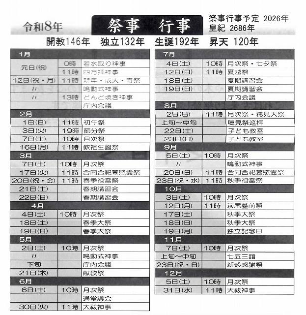 令和8年祭事・行事予定