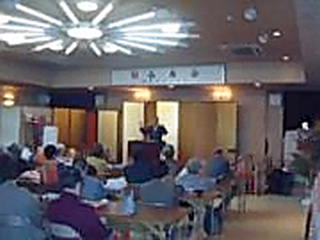 | 長寿会開催 福山教会 特派員 小 林 隆 去る十一月二十三日(日)、福山教会に於いて、恒例の長寿会が行われました。当日は天候も快晴。七十五歳以上の元気な信者さん二十五名を招待して、祭典部、総務部、婦人部、青年部協力のもと、楽しく賑やかな長寿会の模様を報告します。 十時から、教会長斎主により「長寿祈願祭」が厳修されました。副斎主は小林穣教師、祝詞後取は渡辺和子教師、祓い行事は小林隆教師、祈念詞は箱田之恵教師、玉串後取は小林鎮子教師。招待者全員による玉串拝礼。お一人お一人の拝礼の様子を祭典部副部長の井上誠教師と石岡節夫教師が撮影します。楽人は津尾ファミリー三名。祭典終了後は教師と共に、全員で記念撮影。 そのあとは、三階ホールで楽しい懇親会です。津尾紀久雄総代の軽妙な司会で開演です。ゆっくりと茶菓子を戴きながら、見事な琴の演奏に皆さん聞き入っています。演奏は教会長のお孫さん野島大宜君(5歳)、津尾祐佳里さん、津尾健一郎君、総務部副部長の井上好恵さん、津尾美智子さんなど多士済々。 演奏が終わると、副斎主を務めた小林穣教師による乾杯。さあ、いよいよ楽しい開宴。昨日から婦人部が下準備をして、真心を込めて作った手料理に、皆さんニコニコしながら舌鼓。あちこちで料理の味付けに賞賛の声が上がりました。 おなじみのクイズ大会。出題は津尾美智子さん。正解者には豪華景品?贈呈。ただし全員に当ります。皆さんおおはしゃぎ。招待者の松浦さんのカラオケもお見事でした。 ![]() 「福山教会の祭典部長兼演芸部長」の漫談。芸名は武者小路スケマロ。あまりの面白さに涙を流して笑う人、椅子から転げ落ちる人など会場は大爆笑の渦。 そして、教会長の講話。「喜びと楽しみは違います。喜びは苦しみの後にやって来るが、楽しみは娯楽や趣味の世界。本当に苦労された方は喜びも倍以上」含蓄のある話に皆さん深く頷いていました。 真田孝子婦人部長が記念品と長寿祈願御守を贈呈。この御守も二週間前に多数の教師が心を込めて作った手作りのもの。神殿にお供えして、教会長に毎日祈念して頂きました。 ![]() そしてお待たせ。全員で「河内おとこ節」を踊ります。これは本院婦人会の瀬戸真智子先生に無理を言って、教会長が直々教えて頂いた踊り。銀色と赤色のテープを巻いた竹の棒も二十本いただき、これでは足りないと箱田定義代表総代、小林好男相談役、檀上由光青年部長が山へ行って竹を切ること百本。この棒を叩きながら、老いも若きも輪になって踊りました。「ああ、楽しかった」「久しぶりに踊った」会場からは笑いが絶えません。 そして、名残は尽きませんがお開きの時間になりました。青年部員が招待者を自動車で駅や自宅まで送っていきます。「来年もよろしくお願いします」「楽しいひと時、どうもありがとうございました」と感謝の声。 皆さんを送った後は会場の後片付けと反省会。 ![]() 「来年はこうしよう。ああしよう。」など、いろいろな意見が出ます。「皆さんに喜んで頂いて本当に良かった」この思いを胸に各部員は帰路に着くことになりました。 皆様、おつかれさまでした。 そして、特派員の私も家族を車に乗せ、一路広島へ向かうのでありました。夜空に輝く星がにっこり笑って見えたのは、気のせいでしょうか。 ![]() |