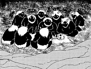 | 古事記「絵で見る解説文」 古事記 絵で見る解説文 Hしばらく進むと… ―― H挿絵の説明 ―― しばらく進むと、伊邪那岐の神は息を飲みました。 灯火の明かりに浮かび上がったのは、生前とは似ても似つかぬ、死んで腐り果てた伊邪那美の神の体でした。 また体の周りは、伊邪那美の神が体のあちこちから産み落とした恐ろしげな雷神たちが守っているのでした。 ![]() *本教の霊祭詞の中に『霊祀霊前告詞(霊祀祝詞)』という少し長めの祝詞があります。 その部分的な内容に、 『人は本来大元の先祖である天在諸神のご意志を受けて生まれたものであるから、その御神徳を受けて幸せに暮らすのが当然なのです。 それなのに人間が勝手に作った様々な教えに迷って、大元の神に報告が出来ないようなことをすると…』とあり、次にその報いで受ける色々な罰の中に、 『八の雷神に攻め悩まされ…』という下りがあります。 その”八の雷神“というのが、ここに現れる神です。 恐ろしげな神という印象がありますが、良くないことをした人を懲らしめ、その罪を教えてあげる、という役割を持つ神なのです。 そして、 『しかしながら、あなた(故人)は生きている間に神を敬い世のため人のためにも尽くし、あなたの子や子孫もこの神の道を一生懸命に守り、こうしてお祭りをしているのですから、大神様の守りがあることは疑うべくもありません。…』と続くのです。 皆様も是非、神理教の教師にお願いして霊祭をして頂き、人が歩むべき正しい道を祝詞でご先祖に説いて頂くと共に、ご自身の生活の指針とされて下さい。 |