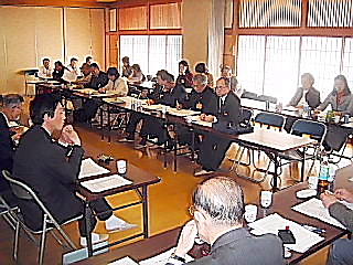 | 「独立・生誕式年祭を成功させよう!」 第十五回 神理未来委員会・神理教青年部合同会 平成16年2月14日(土)・15日(日) 第十五回神理未来委員会と神理教青年部の合同会が二月十四日、十五日の両日、本院・明星会館で開催されました。今回は、十年に一度の式年大祭を共に力を合わせて成功させようという目的で、初の試みとして、未来委員会と青年部の合同会という形で行われたものです。地元からも北九州神理の会の皆さんが参加しました。 まず、十四日午前十一時から行われた合同役員会で、二日間の流れと、式年大祭の奉仕統括正副リーダーを決めました。 ●統括リーダー 津尾 紀久雄(福山教会) ●統括副リーダー 小田 勉(福永教会) 吉村 文男(名古屋大教会) 壇上 由光(福山教会) 午後から始まった合同会では、瀬戸局長から式年大祭の流れの説明があり、その後、奉仕を中心に役割分担を行い、質疑応答や未来委員会からの提案なども含めて、活発な意見が交わされました。 十六日には十年に一度の産土社遥拝式が執り行われます。担当するのは神理の会。行列の順序やルート、式場の設営などについて、綿密な確認がありました。例えば、遥拝式は本院そばの紫川河川敷で行われますが、天候が悪くぬかるんでいる場合はどうするのか等、いろいろなケースを想定しなければならないため、確認事項は山程あります。「とにかく式年大祭を成功させたい!」という思いのもと、時がたつのも忘れて熱心な話し合いが続きました。 三月二十日・二十一日には、神理教青年部の式年大祭統括正・副リーダーと支部長・担当部員と大教庁担当職員によって大祭の最終打ち合わせ会が行われます。 十年に一度の式年大祭、しかも三日間開催という、これまでにない大祭だけに、準備は本当に大変です。目に見えるところだけでなく、目に見えない部分の苦労も計り知れないはず。しかし、それだけに大祭終了後の達成感は格別に違いありません。 翌十五日、未来委員会の今後の在り方について話し合いが持たれました。その結果、次回の未来委員会(来年八月二十八日・二十九日)は、「新未来委員会」として人心を一新。できれば青年部も一緒に、目的を持って集まる、ということになりました。 |