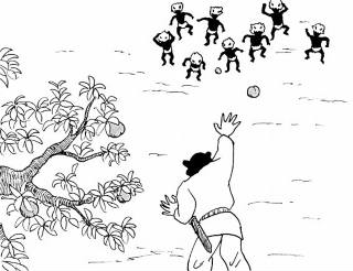 | 古事記「絵で見る解説文」 L(絵のみ) ―― L挿絵の説明 ―― 男神(伊邪那岐の神)は雷神と千五百人の黄泉の国の兵隊に追われ、やっとのことで死者の国の出入り口である黄泉比良坂のふもとにたどりつきました。 そこには一本の桃の木が生えています。 男神(伊邪那岐の神)は、思わずその実を幾つかもぐと、追っ手に向かって投げつけました。すると、雷神たちはおそれをなしてちりぢりに逃げてしまいました。 *解説 時代考証からするとこの時代に白桃は日本になく、あったのはもっと小さな山桃の一種だったようです。 こうした故事から、桃は神道殊に本教にとってとても大事なものとなっています。 本教は、御教祖のご先祖である饒速日命(皇室のご先祖邇邇芸命の兄)から物部氏の時代を通じ教えを伝えられた神道ですが、その神術の一つに御神宝(かんだから)があります。 本教の教師になれば、十種の神宝を御神宝として戴かれますが、これは桃の枝から出来ています。 十種の神宝は、古くから巫部家に御神宝として伝えられてきたものです。 |
