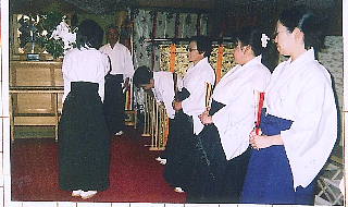夏越祭平成16年7月11日(日)十一時〜 ![]() 玉串拝礼 柳純恵さん 例年よりも早く梅雨明け宣言が出た十一日。今年の夏越祭は、朝から夏の日差しを感じさせるような快晴に恵まれました。大元稲荷神社へ続く参道は、木々のひさしで陽が遮られており、登っていくにつれ、熱い体が少し涼んでいく感じがしました。 この夏越祭とは衣食住の感謝や、商売繁盛を祈願する行事です。管長様はお話の中でこう語ってくださいました。「天候に恵まれ、山へも登りやすかったことは、ありがたいことです。以前は赤土だった参道も、現在は石敷きになっています。これも、それぞれの方が真心を尽くして頂いた結果です。そうした皆様のお陰を考えながら、参道をたどる中で神様へ思いを馳せます。 『清ければ 神は寄るなり 掃き清め 祓い清めて 神祭せよ』 清さが参道を歩く中でまた清められるのです。便利のよさに慣れてしまいがちですが、参道はそうはいきません。これからも足を運びましょう、無理でも心は神へ向けましょう」 今回も津山や長崎など、遠方からのお参りを頂きました。そんな中、津山教会の柳純恵さんにお話をお伺いしました。津山教会は大元稲荷の分霊を奉斎されており、夏越祭には毎年参拝。今年は柳さんが津山教会を代表して来られたそうです。「今年は特に暑い中での祭典でしたが、管長様の祝詞やお言葉を頂き、また山に登っての祭典も清々しい気持ちになりました。遠方からの参拝者もあり、信仰の深さを感じました」と感想を述べてくださいました。 柳さんは津山教会の教師であり、幼稚園教諭でもあります。毎日早朝のご神拝を欠かさず行っているそうです。また、夏・秋の大祭には本院より先生に出張して頂き、参拝者の方にも大変喜ばれているとか。今年は信者様の家内安全と身体健全、子どもたちの幸福と津山教会、幼稚園の繁栄をご祈願された柳さん。遠方からの参拝、本当にお疲れ様でした。 |