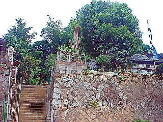 写真2.下の参道から見た、赤のキョウチクトウの木です。
