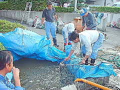 | 5.魚のダメージを防ごうと、駆け足で 運んでいます。 |