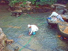 池に流れ込んだ泥やゴミがきれいになくなり、舐められたように綺麗になりました。