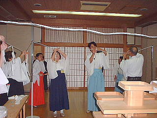 実際は縄で行います。 写真のビニールひもは練習用です。