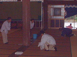 1.大教殿のふき掃除。