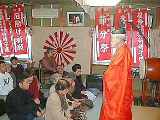 北勢教会の節分祭。赤の制服は伊藤守彦教会長です。