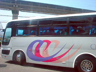 3.まず観光バスが出発します。