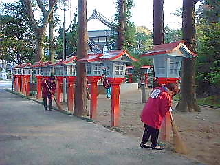 | 5.16日、朝の青年部を中心とした奉仕の様子。 |