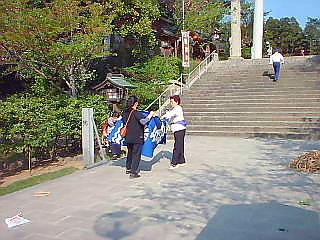 参拝者は自分の御歌が奉納される時、拍手をします。