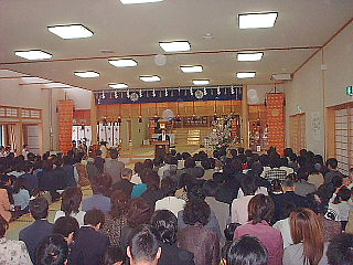 青年の白衣・袴姿の人たちが正面に並ばれていました。 参拝者も500人近くおられたそうですから、これも本院な