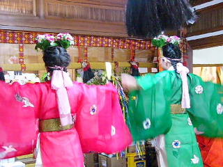 副斎主は、三重県教務所長北勢教会の伊藤守彦教会長が務められました。 本殿祭の中で、今様(続けて君が代)の巫女舞奉納がありました。 楽人も龍笛二名、篳篥二名、太鼓二名(楽太鼓一名・通常の祈念詞の太鼓一名)と賑々しく 飾られました。 祭典が終わるとお神酒の振る舞いがあり、続けて直会が行われました。 直会での食事は仕出し料理の他手作りの巻寿司、いなり寿司、諸子のおし寿司やえび フライ(名古屋では恒例のようです)、また子供さんの為の子供料理がありました。 18日(日)本殿祭の参拝者は、100名を軽く超えていました。 翌19日(月)・・・午前8時頃より片付けを行い、終了後に御閉扉が行われました。 一時的に雨に降られたものの、全日天候に恵まれ無事に大祭を終える事が出来ました。 今回結婚して初めての大祭奉仕をさせて頂きましたが、横江初恵教会長をはじめ周りの方々に 温かく見守られ、大変楽しく有意義な、また貴重な奉仕をさせて頂く事が出来ました。 ありがとうございました。