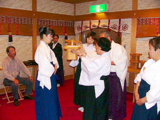 お出で頂き、名古屋市にある第二富士ホテルに於きまして「中部ブロック研修会」が開催されました。 今回より会場として使用させて頂く事になりました第二富士ホテルは、以前は出雲大社のご神体を 祀った挙式場のある結婚式場だったとの事です。 今はご神体だけを出雲大社に返されたそうで、使用はされてないとの事でした。 今回はその挙式場をお借りしての祭式講習でした。 (なんと品具もお借りする事が出来ました。) まず初日の7日の土曜日は、午後4時より教師を対象とした