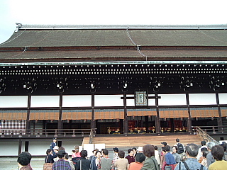 バスでの参加者は40名程でほぼ満席状態、平均年齢60才?。 天候は朝のうちは一時雨も降りましたが、次第に晴れ間ものぞいてきました。 「京都御所」は私にとって初めての機会で、行く前から心がワクワクしていまし た。 御所での一般参賀期間が短いこともあり沢山の人が列を作って進んでいきます。 御所内についての勉強不足がたたり、写真は沢山撮れましたが、それぞれの名前やいわれが 解らず説明できないのが残念です。 皆様も、一度は京都御所へ行かれる機会を見つけられては如何でしょうか。 「清水寺」は、小学生の修学旅行以来、実に40年ぶりとなりました。清水寺に着くまでには、バスを 降りてから、上り坂が続き両脇にはたくさんの土産物店が軒を連ねています。 今の時期、修学旅行の季節と重なり合い、制服姿を見つけては、遠い昔が思い出され懐かしく思いました。 殆ど記憶も薄れてはいるものの、「清水の舞台」から見下ろす景色は、今も昔も変わって いないのではないかと感じました。 「神理ホームページ画像掲示板http://e-koji.web.infoseek.co.jp//cgi-bin/imgboard/imgboard.cgi」にも 幾つかの写真を掲載致しました、宜しければご覧下さい。 *編集より