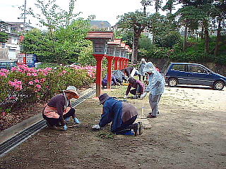 今日も好天気の下、朝から道しるべ教会15名が境内の清掃や駐車場の