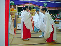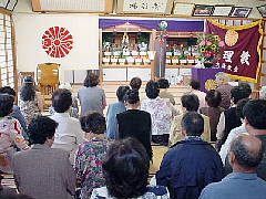 4月28日、大津教会では春季大祭が執り行われました。 午前11時より献選式、その後清祓い、祓い行事、教会長春季大祭祝詞が奏上、祈念詞、斎主の 玉串拝礼、引き続き、補教、参拝者と玉串拝礼が行われました。 その後、教会長のご挨拶、直会に移り御神酒を頂き、ほろ酔い加減になりますと教会の 恒例の”ジャンケンポン”が始まります。 各テーブルから1名づつ勝ち上がり、神選物の高価な物、お魚、スイカ、メロン、重ね餅など いただきます。 ジャンケンに負けた人は、他の品物を頂いて帰ります。 和やかなうちに終りました。 献選式ですが、みんながメールを送るという事で緊張しましたので、左右に合わせようという 気持ちが先になり、献選物が少し下がっている事が反省の材料となりました。 後は本院の大祭のとおりに行ったつもりですが・・・? *編集より