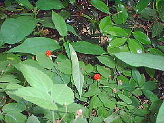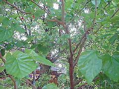 次は、この赤い実が黒くなるととっても甘い、何か葉っぱもおいしそうな、クワです。