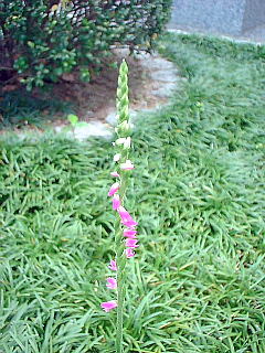 良い(背の低い植物が好き)ようです。 ラン科で別名モジズリといいますが、花の咲き方がらせん階段に似てまるで”ネジ(これがヒント!)”のようですね。