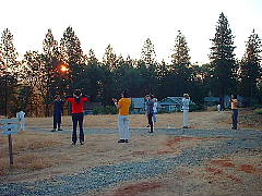 写真4.ヨガの体操をしながら、自然の気を体に取り入れているところ。