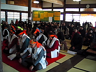 昨日は立春ということですが、九州でも寒い日が続きます。 初午・節分の様子などお伝えします。 >行事予定< 毎月1日6:00より月例祭、16日16:00より教祖祭 まだどんどん続きますが、とりあえず、 1) 2月12・13日(土・日) 福山教会の出張講習会 2) 2月16日(水)11:00〜教祖生誕祭 直会とお楽しみ会もあります。 3) 2月20日(日)9:30〜15:00 第9回 北九州教友会 内容:七罪 八徳など >行事報告< 1) 2月 3日(木)11:00〜 大元稲荷の初午祭り 写真を取り損なってしまいました。 岡山・広島・長崎といつもの皆さんを中心に、遠くからの御参拝も頂きました。 前日・前々日と本院周辺でも道路が凍結するなど大変でした。 それでも、沢山の方にお帰り頂き、お陰で賑やかにご奉仕することが出来まし た。 2) 同日15:00〜と、20:00〜 節分祭 2回とも平日に関わらず、本殿に入りきれないくらいたくさんのお参りを頂きま した。 名古屋大教会所属の誠真教会の橘田教師が、ご夫婦で祭官奉仕をして下さいました。 <メルマガ紹介 瀧田 圭樹さんより> いつも大阪からお参り頂く瀧田さんとメールでやりとりしていると、下記のような メルマガを作っておられるそうです。楽しそうですね。 HPをご覧頂き、よろしければ登録して上げて下さい。 メルマガ■「おいしいもの見つけ隊メールマガジン」■ おいしいものを食べたい! おいしいものを伝えたい! 食品のプロが見つけてきた、おいしいもの情報を惜しげもなく公開! 食にまつわる情報も充実!おいしく、ためになるメールマガジン見参! 購読の登録はホームページこちらからどうぞ http://www.mag2.com/m/0000136924.htm