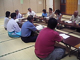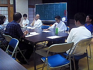3泊4日の第57回夏期講習会は、早くも4日目の最終日を迎えました。 皆さん眠たいことでしょうが、ラストスパートです。 (子ども達は、境内の自然に親しむネイチャーゲームを楽しみながら学びました) (同時刻、大人は勉強べんきょう) (食前の言葉の後、おいしく頂きました) (夜は、家庭や社会や教育の問題などについて、祭式の班別に話し合いの時間を持ちました。 2日を1時間の予定でしたが、予定を大幅に越えて熱心なご討議を頂きました B班) (C班です) (A班です) (もちろん、祭式も力が入りました) >行事予定< 毎月1日6:00より月例祭、16日16:00より教祖祭 1)8月13〜15日(土〜月)は穂見祭の巡拝。 本院から離れた処は7月から伺っています。 穂見月(8月)の祖先祭りは、日本人の良俗です。 宗旨が仏教などのご家庭も、本教の教会長や教師に御願いして神式でお祭りされて下さい。 ご先祖は、大喜びで和まれます。 2)8月16日(火)は11:00より本院大教殿で、穂見大祭があります。 皆様奮ってお参り下さい。 本院に鎮まる皆様のご先祖の幸魂と和魂に、今の幸せと感謝をご報告下さい。 3)8月27・28日(土・日)は、未来委員会です。 本教発展のための、いろんな御意見をお持ち帰り頂きますようお待ちします。 |