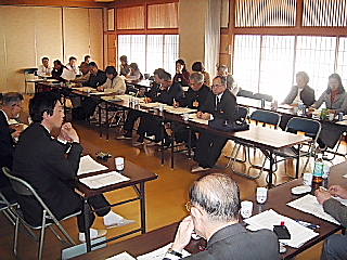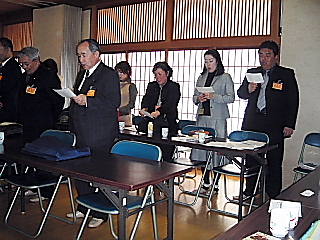 先ほど標記の合同会が終わりました。 1時間ほど早く終わりましたが、役員さんは24時間、一般委員さんでも22時間 の缶詰会議でした。 名古屋や岐阜の皆さんはこれに加えて、新幹線は3時間ですが待ち時間などを入れ ると、往復10時間は掛かるでしょう。 七十才を越える横江春太郎委員長始め委員・部員の皆様方、本当にお疲れさまでし た。 初日の早めに来られた、未来委員でもある堤耕二さんに写真にコメントを入れる技 術を教えて頂きました。 最後にそれを使ってみますので、お楽しみ下さい。 >行事予定< 日にちが飛ぶように過ぎて行きます。充実していますね。 1)2月16日(月)は、11:00から教祖生誕祭です。 生誕170年となる記念のお祭りですから、多数のお帰りをお待ちします。 2)2月21日(土)は、神理教大教庁の庁内会議です。 午前中は責任役員会、午後から1年に1回の参議員会、2時半から職員を加えた 全体会議の予定です。 3)2月28日(土)は、第5回北九州教師会です。 勉強会も兼ねますので、北九州神理の会も参加の予定です。 4)3月7日(日)は、大分県の稲荷宮教会の春の大祭です。 5)3月11日(木)は、東京で教派連の理事会です。 御岳教の管長が替わられたので、披露祝賀会もあります。 6)3月13・14日(土・日)は、福山教会の出張講習会です。 7)3月18日(木)は、津山教会の先祖祭りと明星幼稚園の卒園式です。 8)3月20日(土・祝)は、祖霊祭です。 9)3月20・21日(土・日)は、神理教青年部の式年大祭統括正・副リーダーと 支部長・担当部員と大教庁担当職員の大祭最終打合会です。 <神理未来委員会と神理教青年部の合同会> 午前11時からの合同役員会で2日間の流れと、式年祭の奉仕統括正副リーダーを 決め、進行の諸役など決めました。 会は式年祭の奉仕を中心に、未来委員会からの提案などを含めて行いました。 地元の北九州神理の会も、1日目に参加頂きました。 神理の会は16日の産土社遙拝式を担当しますので、足場やくい打ちなど色んな仕 事の確認がありました。 奉仕人員が足りません。 地元は総代さんに各地区から5人程度の手伝いを、特に平日である16日(金)に 出て頂くよう御願いします。 地方教会も、氏名と奉仕できる日時と携帯電話の番号を、今月中に提出するように なりました。 3月20・21日(土・日)は、神理教青年部の式年大祭統括正・副リーダーと支 部長・担当部員と大教庁担当職員の大祭最終打合会が行われます。 そこには例えば産土社遙拝式では、持ち場の担当者名が記された指示図が出され、 確認が行えるようになるようです。 大変ですが、さぞかし大祭終了後の達成感は格別だと思います。 一に仕事と家庭、二に神前奉仕、三に神祖とのつながりの勉強、四に社会奉仕、そ して五に直会(喜びの分かち合い)です。 万障お繰り合わせ頂き、皆様の振るってのご参加をお待ちします。 そして素晴らしい大団円を味わい楽しみましょう。 次回の未来委員会は、新未来委員会として人心を一新し、出来れば青年部も一緒 に、目的を持って集まるようにしました。 来年8月28・29日(土・日)です。 ----------------------------------------------------------------------------