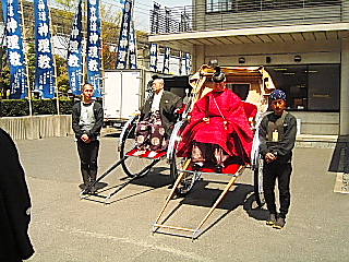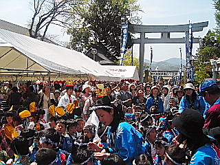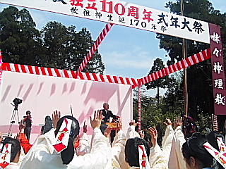 心配されたお天気も、大変上々に晴れ渡り、賑やかにそして厳粛に進行していま す。 催し物も宵祭りや夕べの集いなど、地域の方も沢山来られて、皆さん楽しんで頂き ました。 17日の本殿祭には国会議員の自見さん、夕べの集いには北九州市の末吉市長さん が挨拶に来て下さいました。 何回かに分けて写真でご紹介しましょう。 >行事予定< 毎月1日6:00より月例祭、16日16:00より教祖祭 1)4月16〜18日(金〜日)は、独立110周年式年大祭 2)5月1日(土)は、枝光教会の春季大祭。