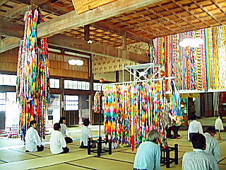 | 神理教メルマガ「秋季大祭準備(旗張り・祝い折り鶴の飾り付け)など 第196号」 平成16年10月7日(木) |